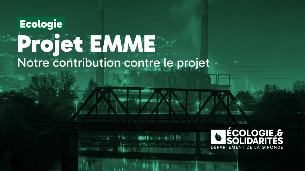 Nous, élu·e·s écologistes du Conseil départemental de la Gironde souhaitons, par la présente contribution, exprimer un avis défavorable concernant l’implantation d’une unité industrielle de conversion de nickel et de cobalt porté par Electro Mobility Materials Europe (EMME) sur la zone de Grattequina, à Parempuyre et Blanquefort.